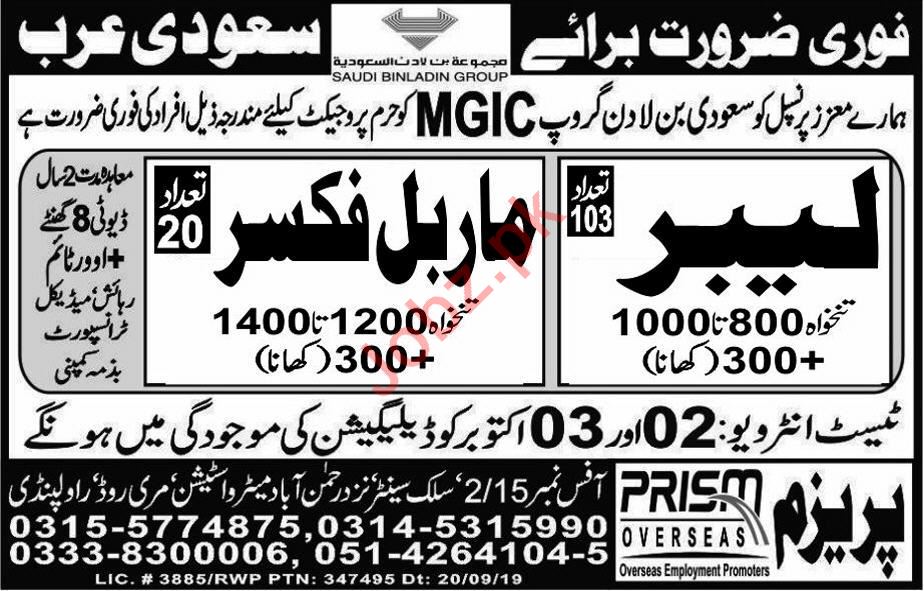 Latest Prism Overseas Employment Promoters Construction Posts Saudi Arabia 2025