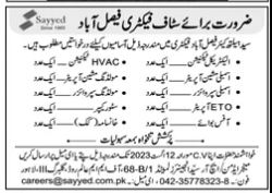 Sayyed Engineers Limited is looking for candidates for following posts as per job advertisement published in daily Jang Newspaper of August 6, 2023 for location Lahore, lahore Punjab Pakistan: