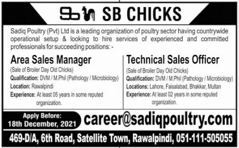Vacancies in Sadiq Poultry Pvt Limited Advertisement December 2021