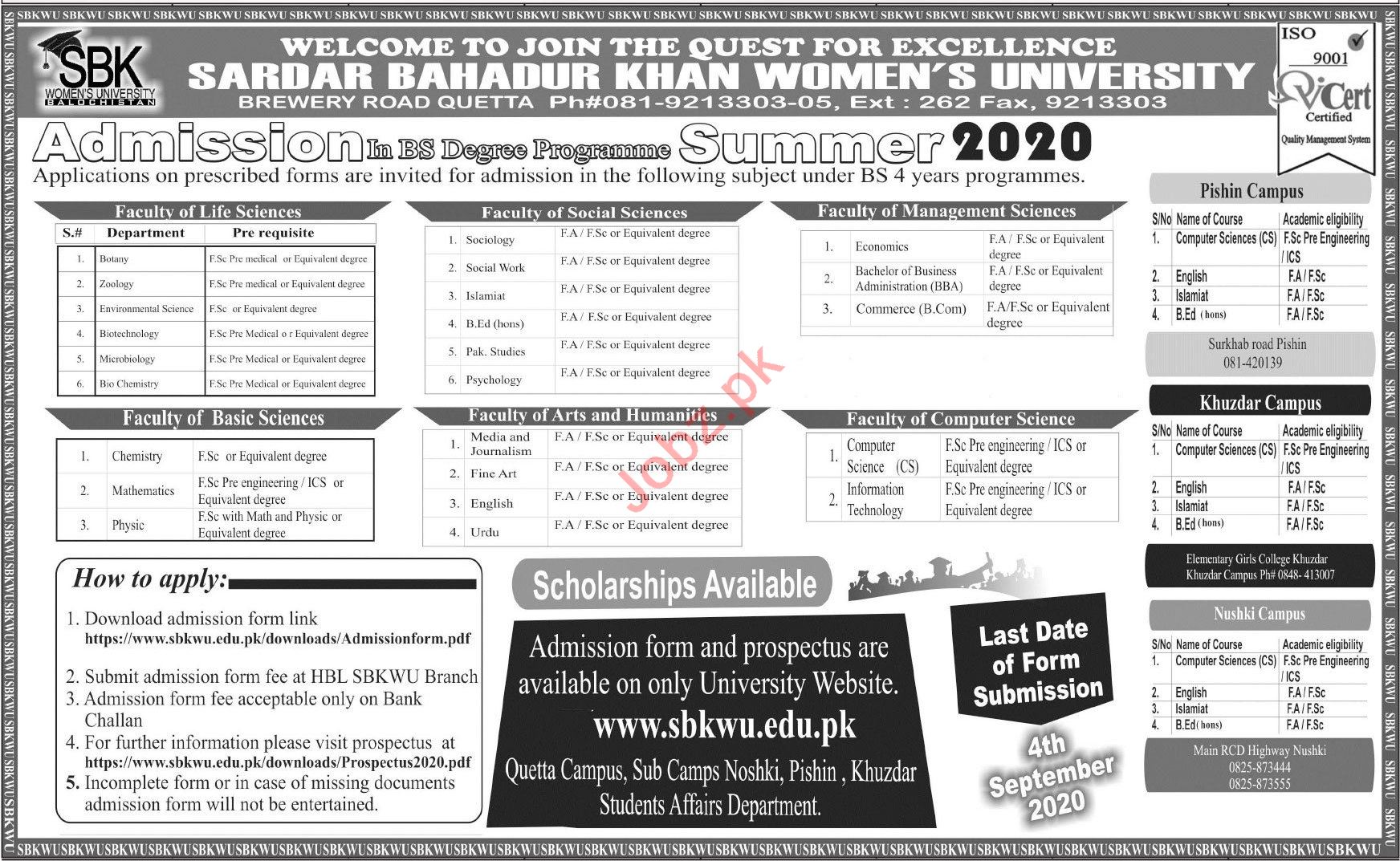 Sardar Bahadur Khan University SBK Womens University, Brewery Road Quetta, Balochist
