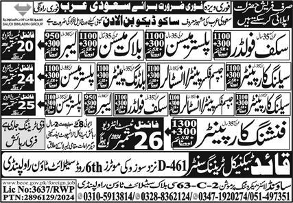 Soundlines Recruitment Promotion invites applications for job positions advertised in daily Express dated 16 September 2024 for following vacancies in Saudi Arabia, saudi arabia Saudi Arabia.