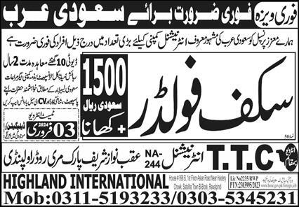 TTC International invites applications for job positions advertised in daily Express dated 1 February 2024 for following vacancies in Dammam, tabuk Saudi Arabia.