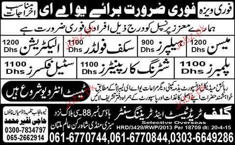 Scaffolders, Mason, Helpers, Electricians Job Opportunity