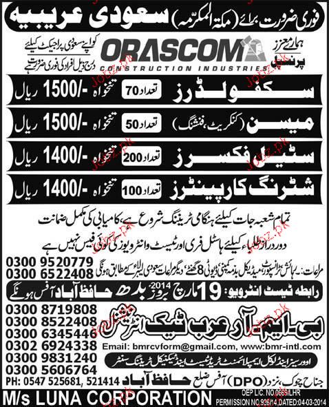 Scaffolders, Mason, Steel Fixers Job Opportunity