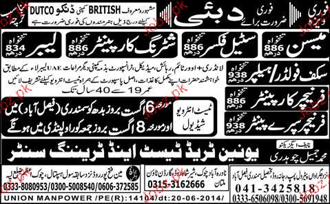 Scaffolders, Shuttering Carpenters, Mason Job Opportunity