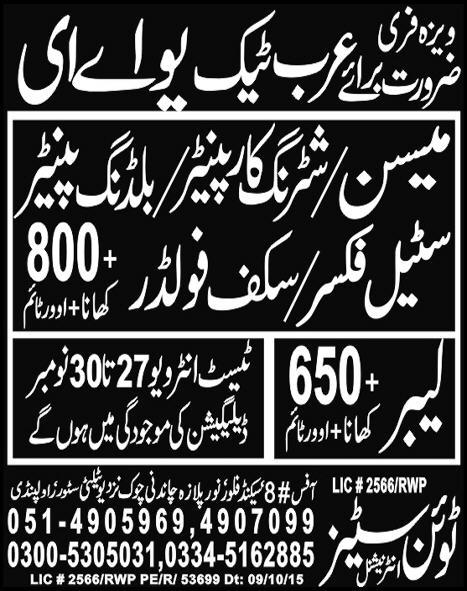 Scaffolders, Shuttering Carpenters, Mason Job Opportunity