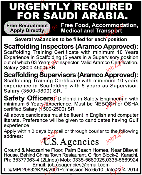 Scaffolding Inspectors, Safety Officers Job Opportunity