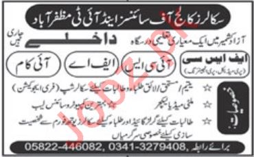 Scholars College of Science and IT has announced the admissions in F.Sc Pre Medical, F.Sc Pre Engineering, ICS, F.A, I.Com in Muzzafarabad. Contact on this no for admission 05822-446082. Read newspaper ad for exact details.