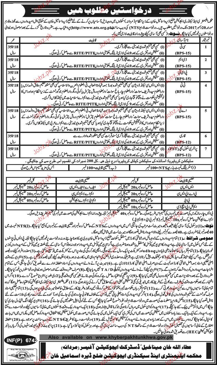 Latest Elementary and Secondary Education Department ESED Teaching Posts Dera Ismail Khan 2025