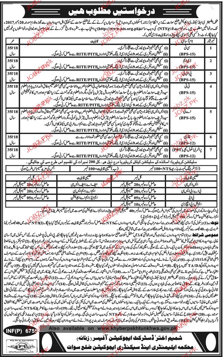 Latest Elementary and Secondary Education Department ESED Teaching Posts Swat 2025