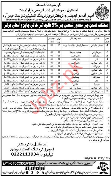 Vacancies in School Education & Literacy Department Advertisement May 2019