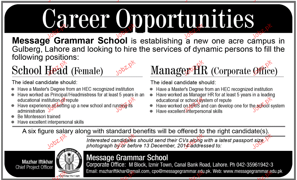 Apply as per details in job advertisement. Login to view further details of how to apply via https://www.jobz.pk online.