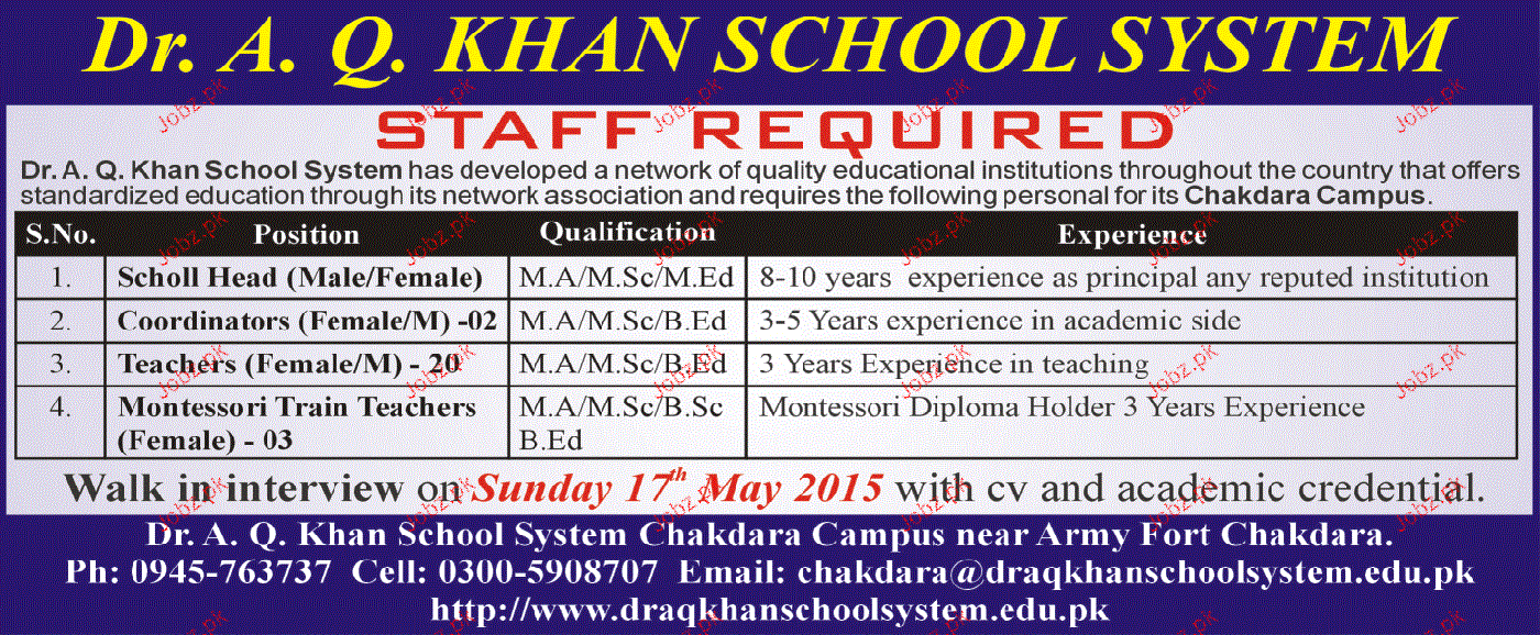 Apply as per details in job advertisement. Login to view further details of how to apply via https://www.jobz.pk online.