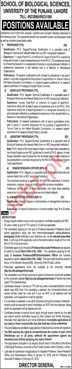 School Of Biological Sciences Facuty Jobs 2018 In Lahore