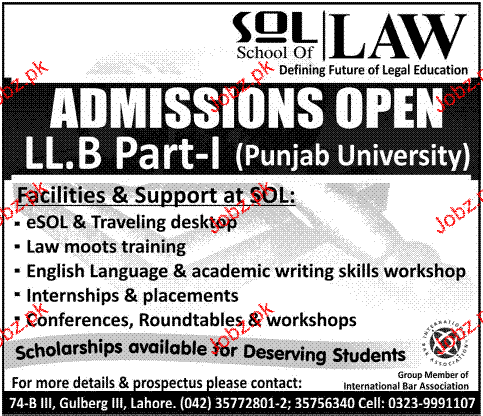 School of Law Admission in LLB Part-I in Lahore. Read newspaper ad for exact details.