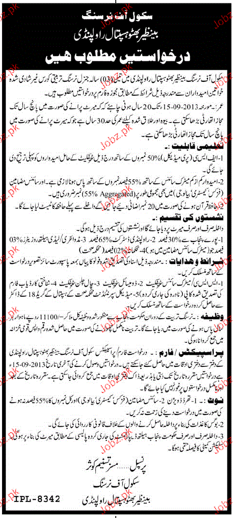 School of Nursing Benazir Bhutto Hospital Admission in Nursing in Rawalpindi Read newspaper ad for exact details.