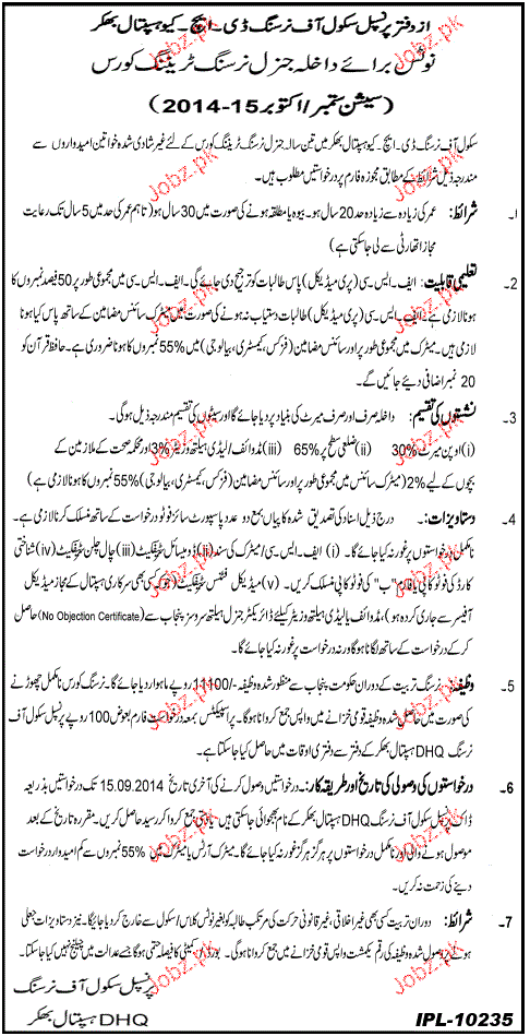 School of Nursing DHQ Hospital Admission in Nursing in Bhakkar. Read newspaper ad for exact details.