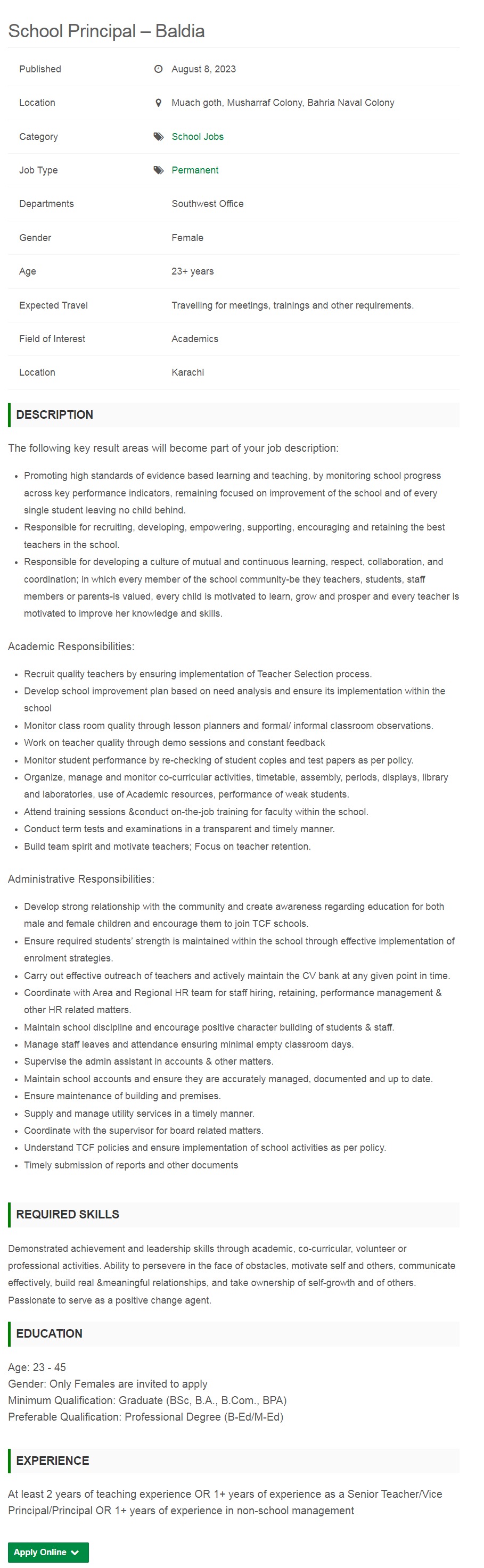Original Source: https://careers.tcf.org.pk/job/primary-school-principal-7/