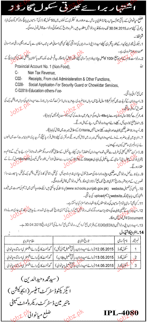 Latest Government Security Posts Mianwali 2025
