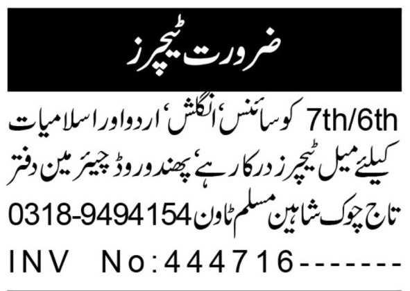 Science Teacher & Urdu Teacher Jobs 2025 In Peshawar
