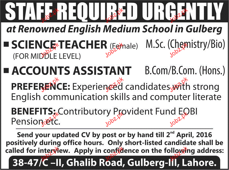Apply as per details in job advertisement. Login to view further details of how to apply via https://www.jobz.pk online.