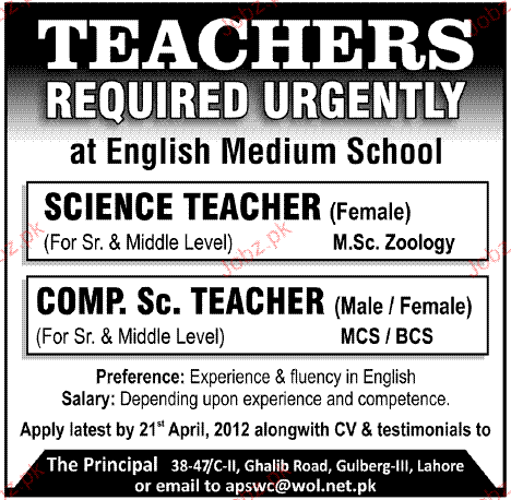 Science Teachers and Comp.Sc Teachers Job Opportunity