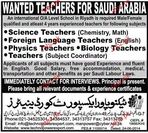 Latest Private Company Teaching Posts Saudi Arabia 2025