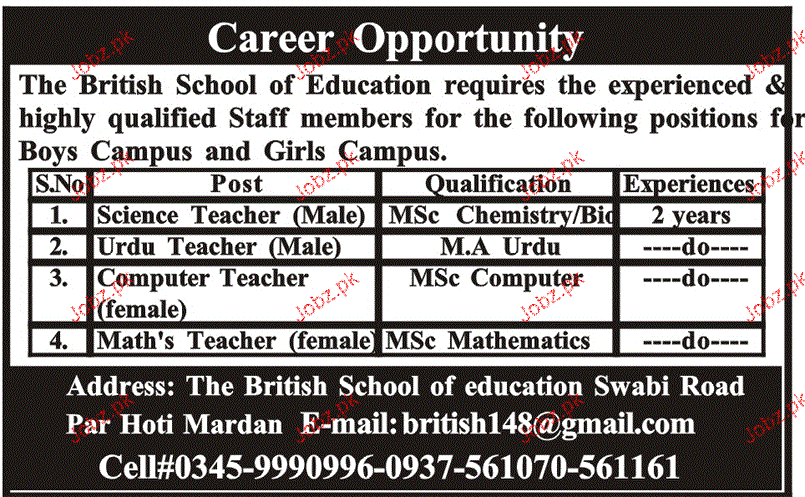 Science Teachers, Urdu Teachers, Computer Teachers Wanted