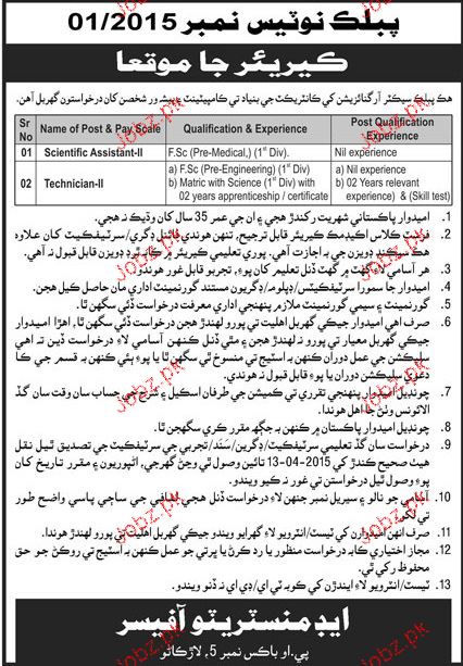 Apply as per details in job advertisement. Login to view further details of how to apply via https://www.jobz.pk online.