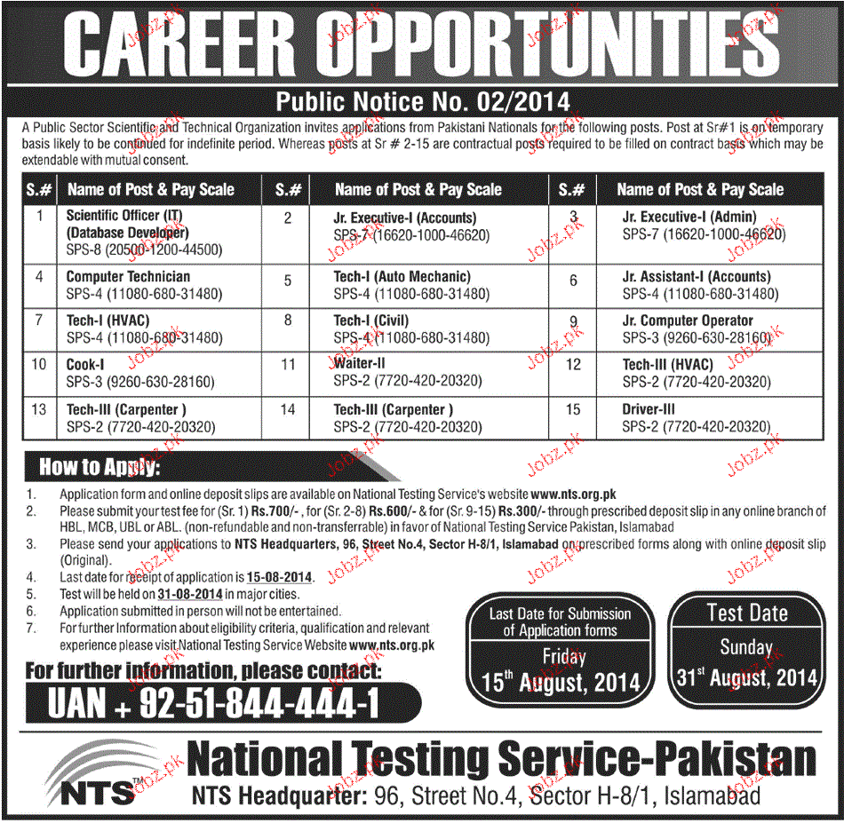 Apply as per details in job advertisement. Login to view further details of how to apply via https://www.jobz.pk online.