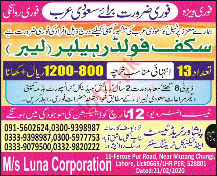 Latest Luna Corporation Labor Posts Saudi Arabia 2025