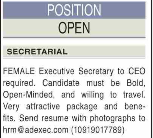 Secretarial Job At Private Company