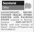 Apply as per details in job advertisement. Login to view further details of how to apply via https://www.jobz.pk online.