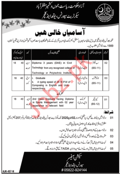 Secretariat Sports Youth & Culture Muzaffarabad Jobs 2020