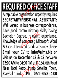 Latest Private Company Admin Clerical Posts Rawalpindi 2025