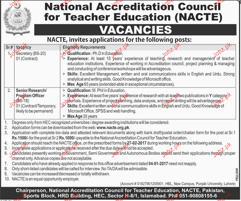 Apply as per details in job advertisement. Login to view further details of how to apply via https://www.jobz.pk online.