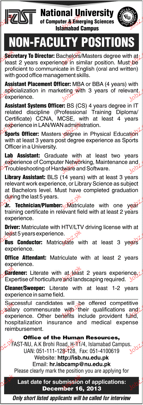 Apply as per details in job advertisement. Login to view further details of how to apply via https://www.jobz.pk online.