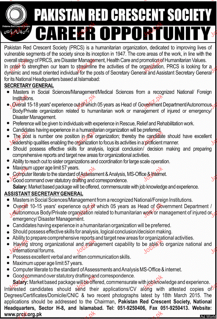 Secretary General Job In Pakistan Red Crescent Society
