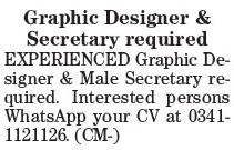 Secretary & Graphic Designer Jobs 2024 in Lahore