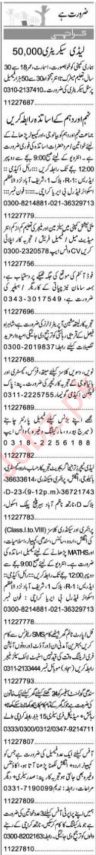 Vacant posts including computer teacher, biology teacher, lath machine operator, helper, lady secretary and salesman are announced in Private Organization Karachi, karachi Sindh Pakistan as per 15 August 2022 advertisement in daily Express Newspaper. Bachelor, Master, Matric, Intermediate and MS etc. educational qualification will be preferred.