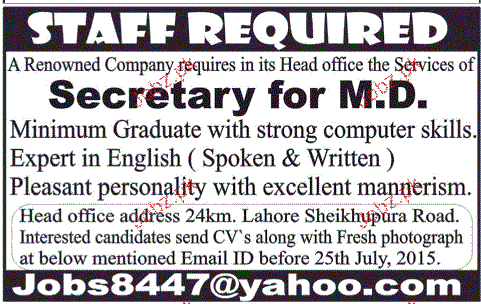 Latest Private Company Admin Clerical Posts Lahore 2025