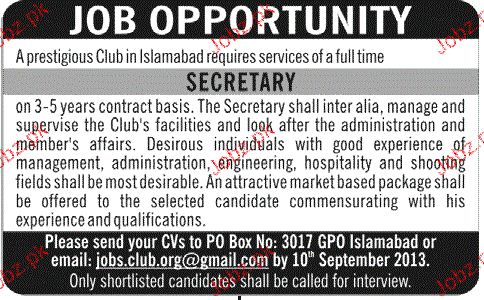 Apply as per details in job advertisement. Login to view further details of how to apply via https://www.jobz.pk online.