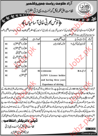 Latest Local Government and Rural Development Department Admin Clerical Posts Muzaffarabad 2025