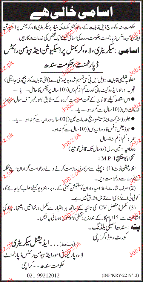 Latest Government Law Justice and Human Rights Posts Karachi 2025