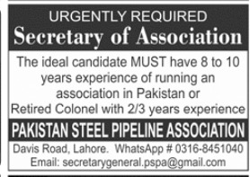 Pakistan Steel jobs advertisement dated about 10 November 2024 in daily Jang Newspaper invites application for the vacant post of secretary of association in Lahore, lahore Punjab Pakistan. Candidates with Bachelor etc. educational background will be preferred.