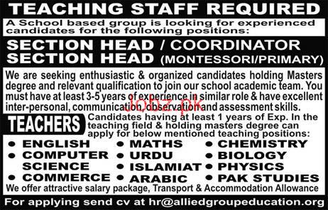Latest Allied Schools Teaching Posts Lahore 2025