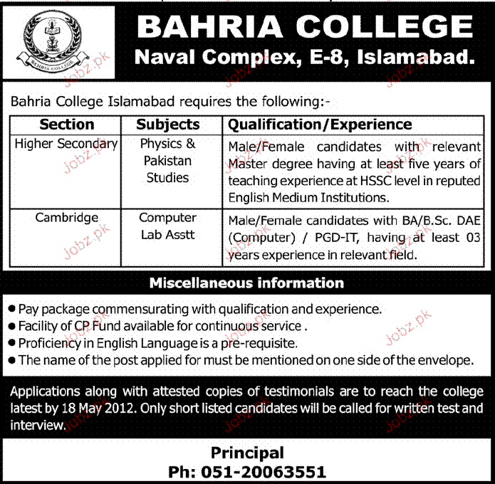 Apply as per details in job advertisement. Login to view further details of how to apply via https://www.jobz.pk online.