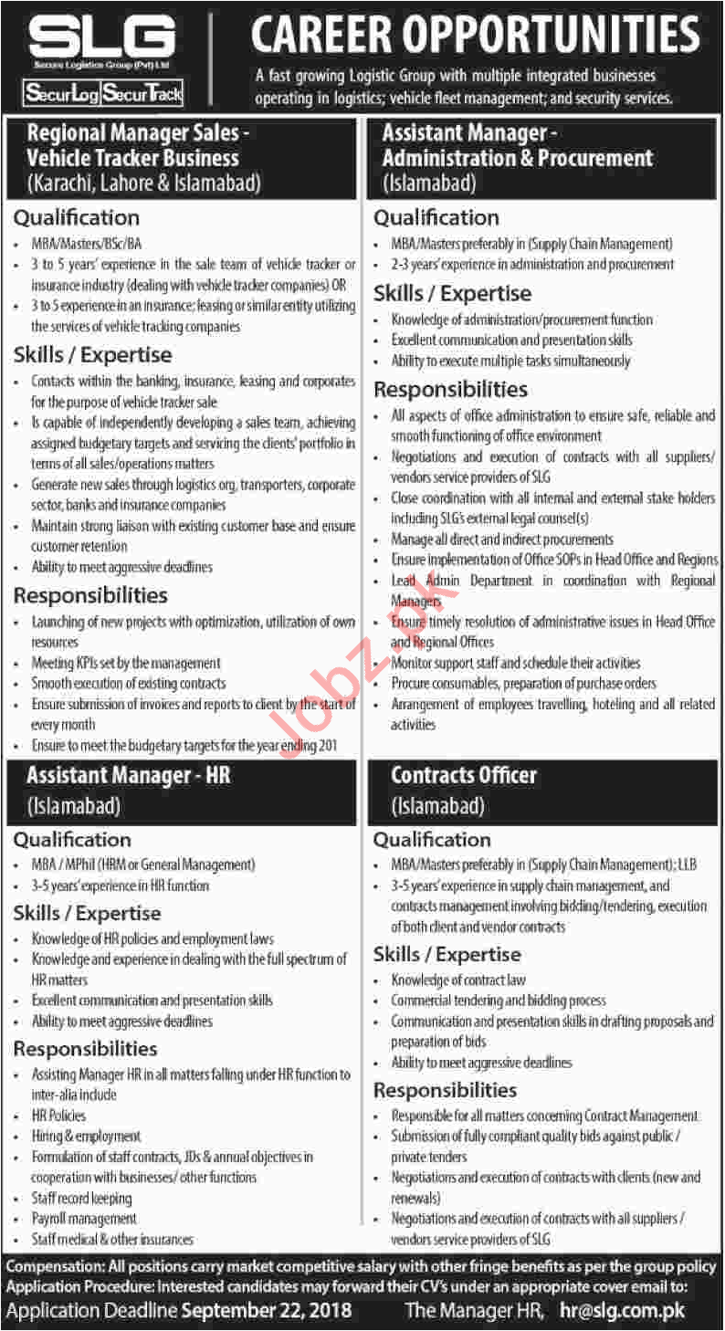 Latest Secure Logistics Group Pvt Ltd Management Posts Islamabad 2025