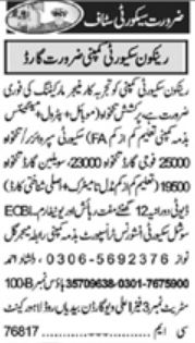 Security Company jobs advertisement dated about 30 January 2022 in daily Khabrain Newspaper invites application for the vacant post of manager marketing, security supervisor and security guard in Lahore Punjab Pakistan. Candidates with Middle, Intermediate, Matric and Bachelor etc. educational background will be preferred.