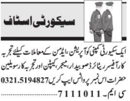 Latest Security Company Security Posts Lahore 2025